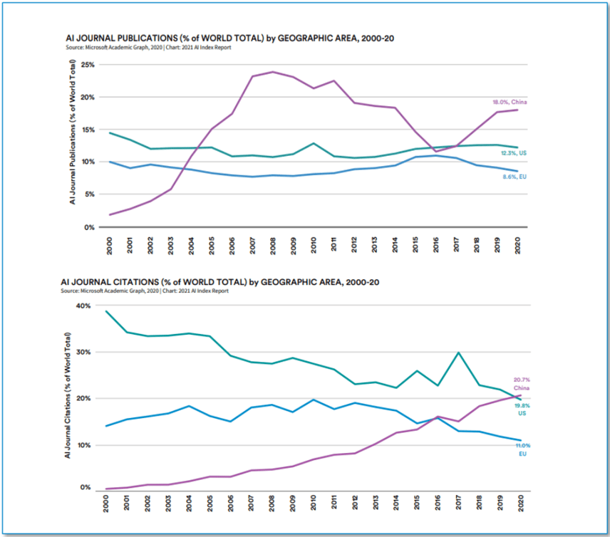 中国的人工智能论文颁发量和被援用量均居全球首位。我国2017年提出《新一代人工智能成长规划》,